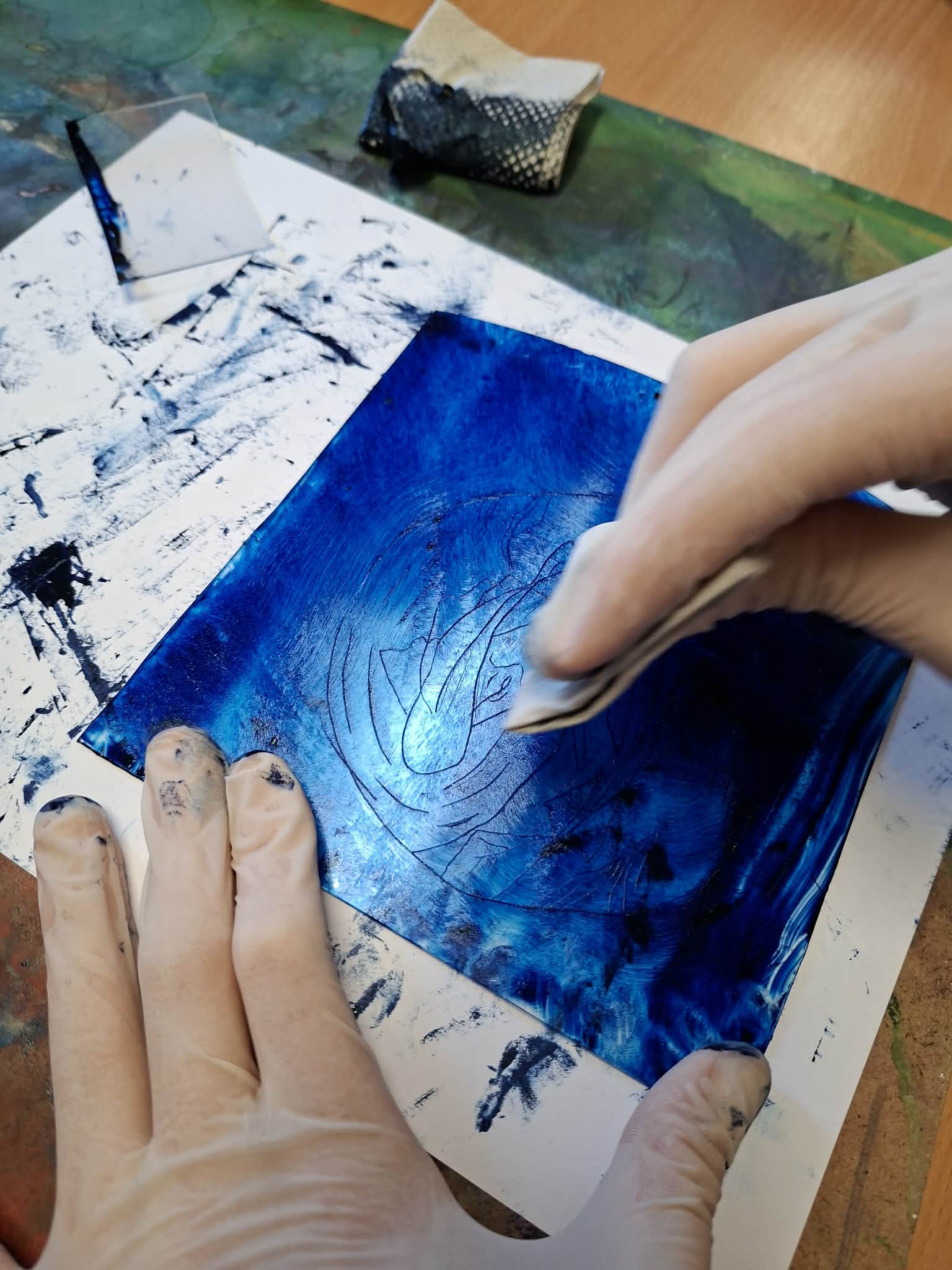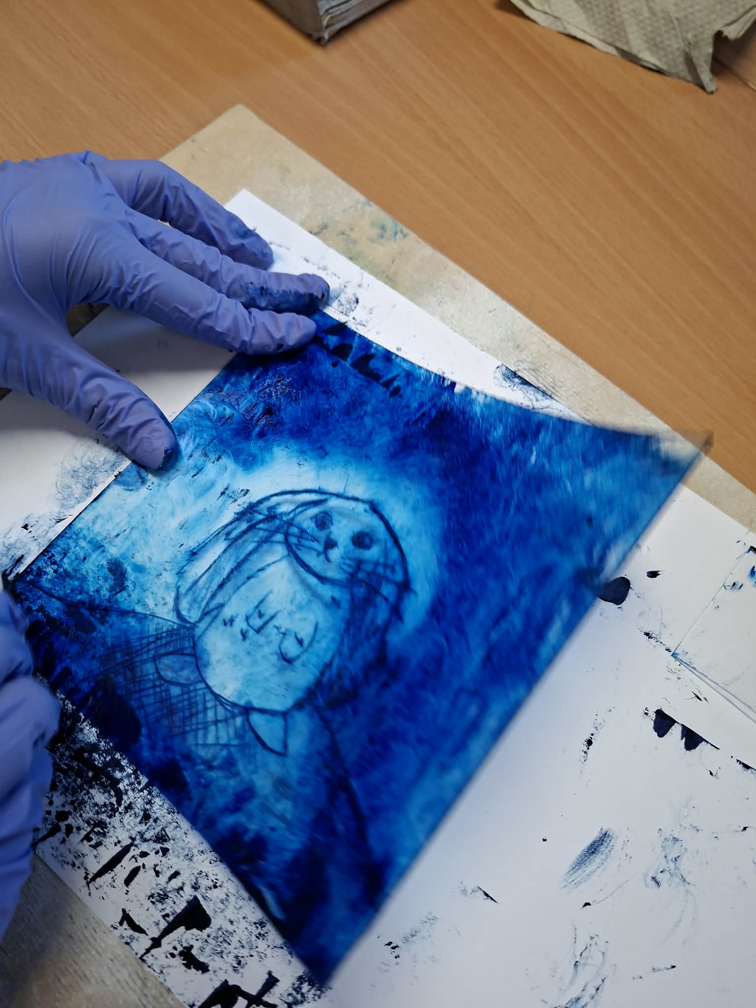 A sokszorosító grafika, a képzőművészet egyik legidőigényesebb ága. Számos technika áll rendelkezésére a művészpalántáknak, hogy gondolataikat kifejezhessék: papírmetszet, linómetszet, hidegtű, rézkarc, stb. Közös bennük, hogy a végeredmény esztétikumának tekintetében nagyon sok apró - látszólag elhanyagolható - tényező játszik szerepet. A végső, megszáradt, vagy nyirkos, de szignózásra kész nyomatok sokat elárulnak a készítés folyamatáról, és bizony a készítés közben elkövetett hibákról is. Ezek az esetek nagy részében a tanulási folyamat konstruktív velejárói. A képzőművészet ezen területe több száz éve kötődik az anyagszerűséghez, és bár a grafikában is - mint minden más területen - jelen van a digitális technika és az MI, a szépségét még mindig részben az adja, hogy fizikai festékkel, papírral, kézműves szemléletben megmunkált dúcokkal dolgozunk, és nincs "Visszavonás" gomb. Tehát a végső képi minőséget, csak a folyamat legvégén érzékeljük. Esetenként a belátott és korrigált hibák, valamint azok javítási folyamata tanítóerővel bír.