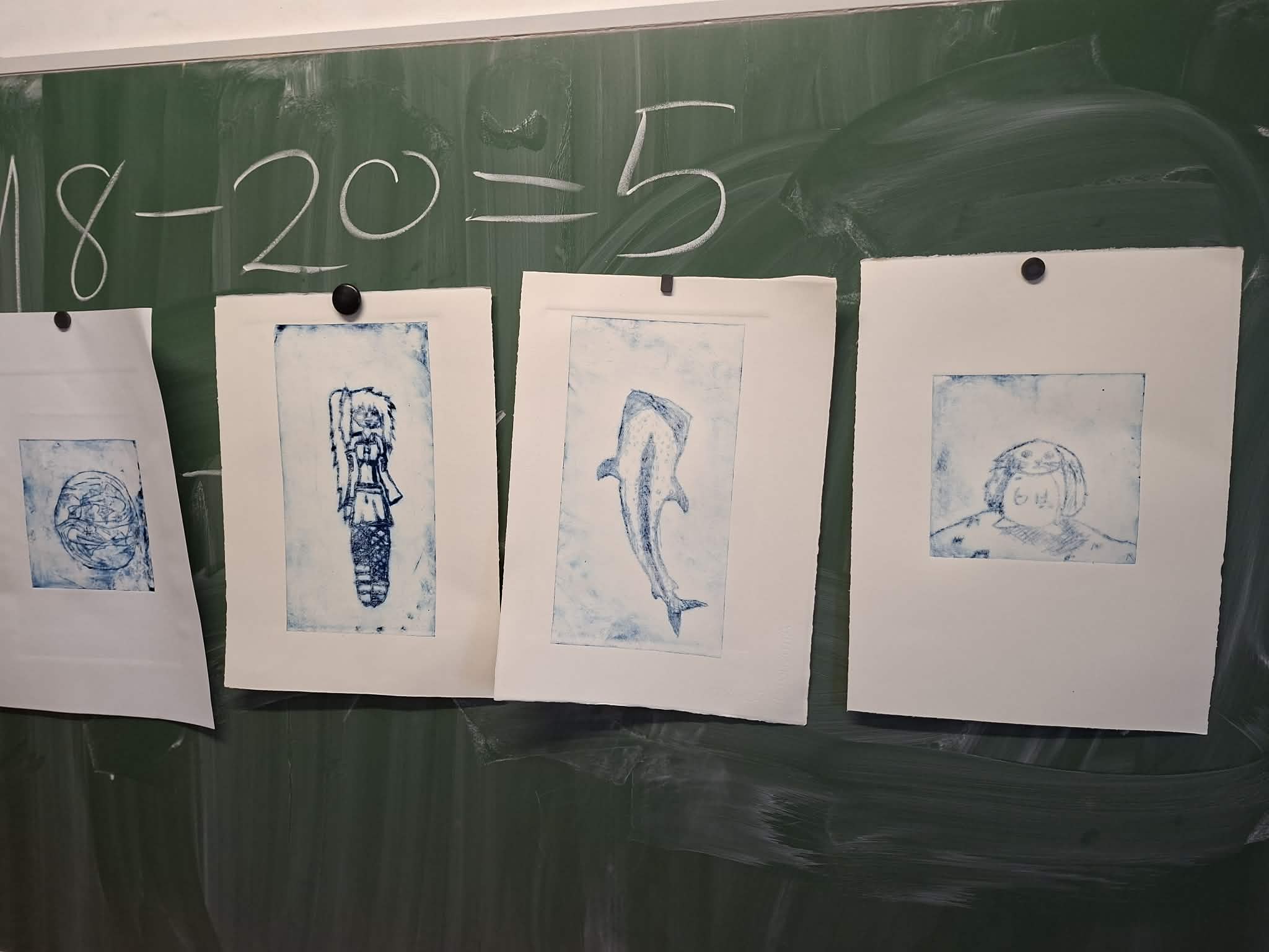Az alább bemutatott nyomatok jellegzetes nyomtatási hibákat mutatnak, amelyeket a növendékek az alkotó folyamat során megoldottak (korábbi bejegyzésekben láthattuk a korrigált, szép eredményeket). Nem az egyes grafikai példányok kritikai szándékú bemutatásai, hanem az alkotás folyamatszerűségének egy-egy kitérői, állomásai. Arra hívják fel a figyelmet, hogy a következetes, kitartó munkára időt kell szánni, esetenként vissza kell térni egy korábbi állapothoz, és arra, hogy néha a véletlen is "beleszól" a végeredménybe.